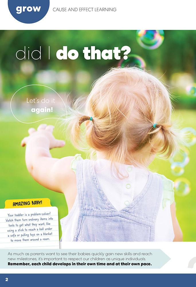 Your little one learns about their world by experimenting — what happens if I do this? Discovering cause and effect through repetitive play helps them master new skills and develop persistence.